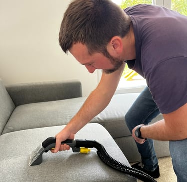 Notre service de nettoyage de canapé à domicile redonne vie à vos assises, quel que soit le tissu. Grâce à une technique professionnelle par injection extraction, nous favorisons l'élimination des taches incrustées, bactéries et allergènes.